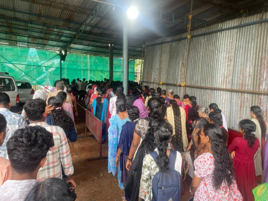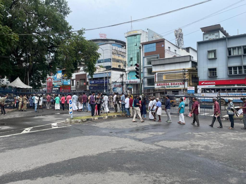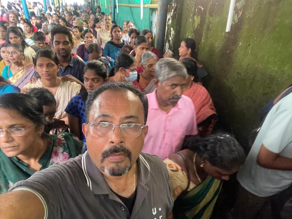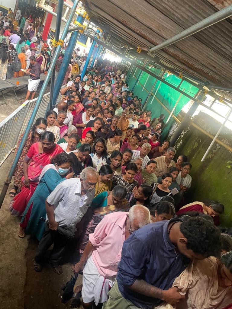 പ്രസ്സും, മന്ത്രിമാരും, പ്രമുഖരും, പാർട്ടി പ്രധാന അണികളും! എല്ലാരും ക്യവിനു പുറത്ത് ! കൂടെ ക്യുവിൽ എൻ്റെ ഒപ്പം, സാധാരണക്കാരും സ്ത്രീകളും (ചിലർ കുഞ്ഞുങ്ങളെയും കൊണ്ടാണ് വന്നിരിക്കുന്നത്) പാവപ്പെട്ടവരും ഒക്കെ ഉണ്ട്.🚶🧍♂️🚶♂️🚶♀️