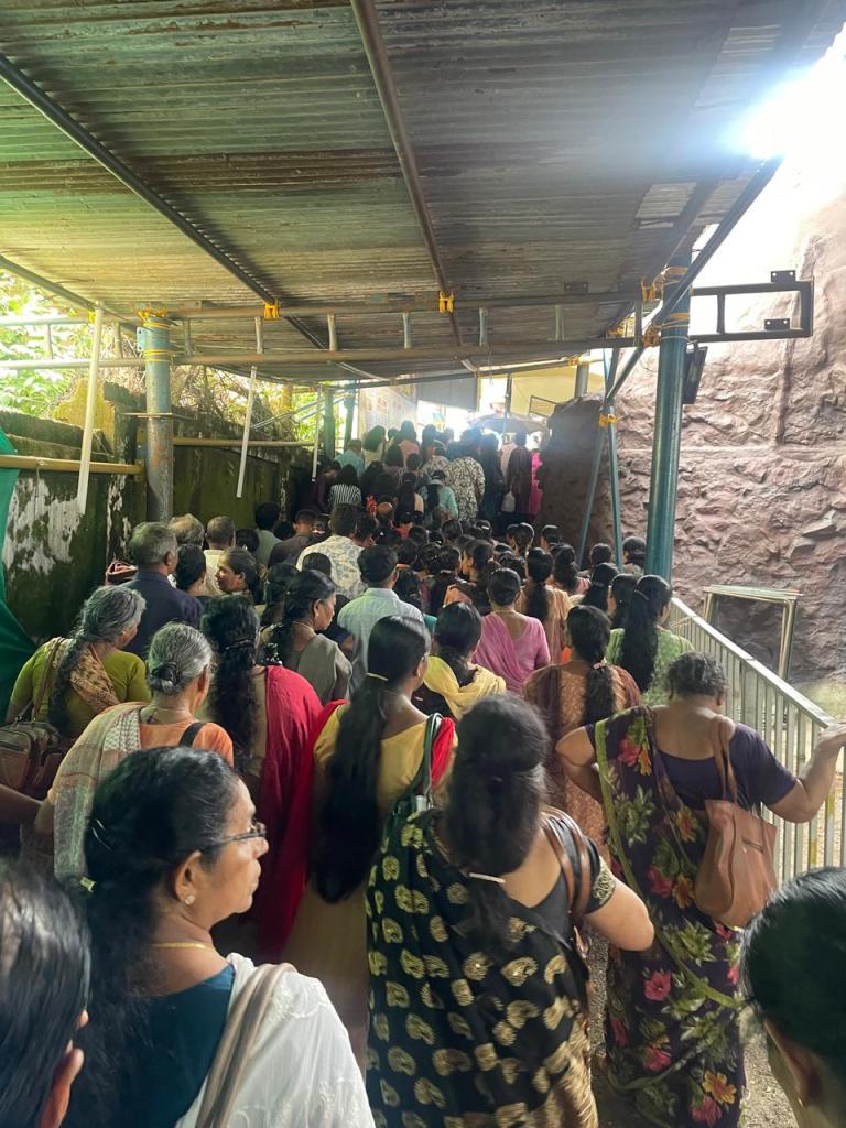 ക്യുവിൽ ഞാനും നിന്നു . പൊരിവെയിലത്തു മെല്ലെ മെല്ലെ മുന്നോട്ടു നീങ്ങി! വല്ലാത്ത ഒരു പ്രത്യേക അനുഭൂതി! പറഞ്ഞറിയിക്കാൻ പറ്റുമോ എന്നറിയില്ല! കുറച്ചു പടങ്ങളിലൂടെ അതിനു ശ്രമിക്കാം. 🖼